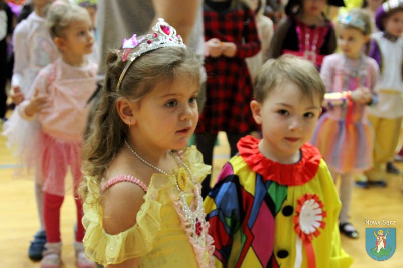 Wśród wielu przygotowanych atrakcji odbyły się wybory Króla i Królowej balu, którymi zostali: Tomasz Gwóźdź (8 lat) i Paulina Szkaradek (9 lat). Gratulacje wyróżnionej parze wraz z wyjątkowymi prezentami przekazała w imieniu Prezydenta Miasta Nowego Sącza Ludomira Handzla, dyrektor Wydziału Ochrony Zdrowia i Pomocy Społecznej, Małgorzata Kuśmierkiewicz. Podkreśliła, że to wielka radość patrzeć na uśmiechnięte dzieci, które mogą tak wspaniale spędzać czas podczas kolejnego już balu karnawałowego. Każde dziecko, które pojawiło się w hali sportowej MOSiR, mogło skorzystać w licznych atrakcji, które zostały przygotowane przez organizatorów, a także partnerów wydarzenia. Także w tym roku stanowisko strzelnicze przygotowali funkcjonariusze Karpackiego Ośrodka Wsparcia Straży Granicznej w Nowym Sączu, a sądeccy policjanci zadbali o promocję wiedzy o bezpieczeństwie ruchu drogowego poprzez konkurs wiedzy.