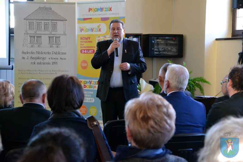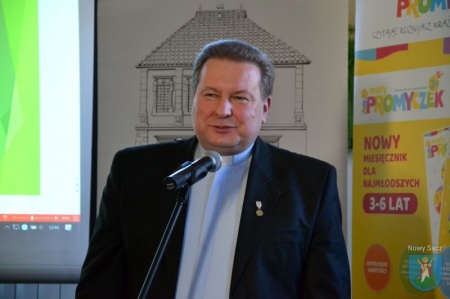 - Myśląc o Wydawnictwu Promyczek, przypominam sobie wykład, w którym kiedyś brałem udział, a był to wykład księdza biskupa Jana Chrapka, który specjalizował się w dziedzinie mediów – mówił w Sądeckiej Bibliotece Publicznej Prezydent Miasta Nowego Sącza Ludomir Handzel. – Byłem wtedy młodym człowiekiem i z wypiekami na twarzy słuchałem tego wykładu w auli Uniwersytetu Warszawskiego. Biskup opowiadał o tym, jaki Jan Paweł II bardzo duży nacisk kładł, od początku swojego pontyfikatu, ale szczególnie od 1991 roku, na media. Na to, jaka to jest forma przekazu, jakie to jest mocne narzędzie wychowania, kształtowania młodych ludzi. Chcę zwrócić uwagę na wyjątkową osobę, która w idealny sposób wpisuje się w te oczekiwania Jana Pawła II – to ksiądz Andrzej Mulka, któremu dziękuję za wiele lat pracy dla dobra Wydawnictwa Promyczek.