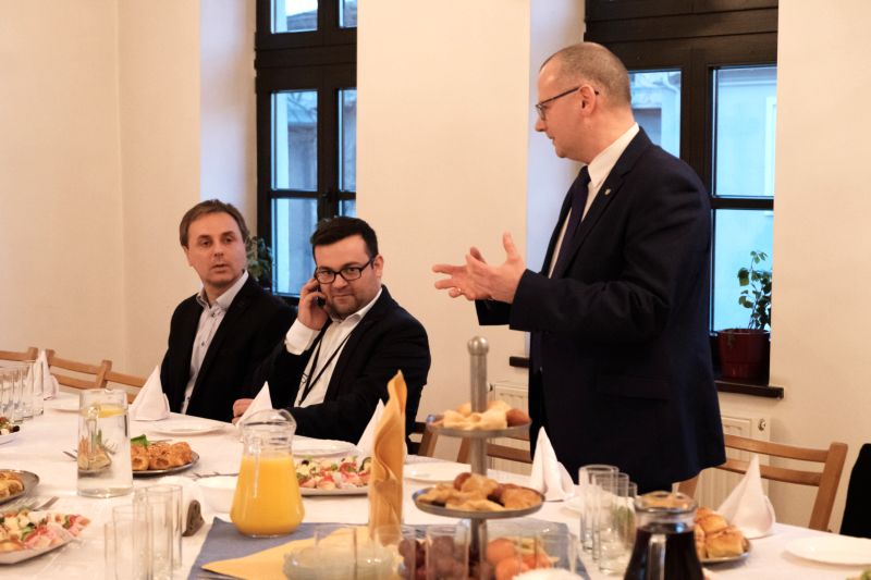 Ostatnim punktem pobytu Dimitriosa Axourgosa, burmistrza Schwerte - miasta partnerskiego dla Nowego Sącza - w naszym mieście, w ramach programu „Polsko - niemiecka współpraca Jednostek Samorządu Terytorialnego”, była wizyta w Domu Historii oraz kościele Ewangelicko - Augsburskim.