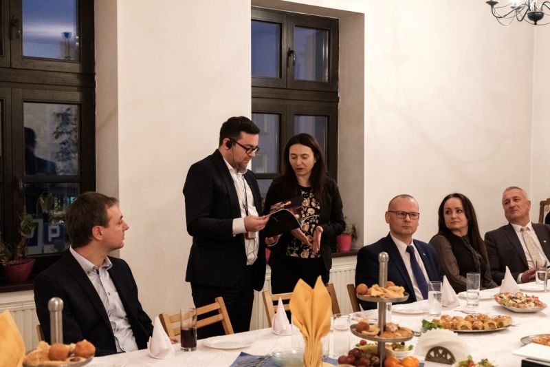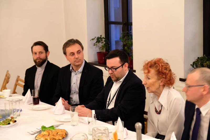 Dimitriosa Axourgosa po Domu Historii oprowadziła dr Maria Molenda, prezes Fundacji Nomina Rosae. W spotkaniu uczestniczył także dyrektor Wydziału Komunikacji Społecznej i Kultury dr Marcin Poręba, dyrektor Sądeckiego Sztetlu dr Łukasz Połomski, Prezes Ogólnopolskiej Federacji Stowarzyszeń Uniwersytetów Trzeciego Wieku Wiesława Borczyk, proboszcz parafii Ewangelicko – Augsburskiej ks. Dariusz Chwastek, który przybliżył burmistrzowi Schwerte historię ewangelików w Nowym Sączu a także działacze Stowarzyszenia Krąg Współpracy Nowy Sącz - Schwerte.