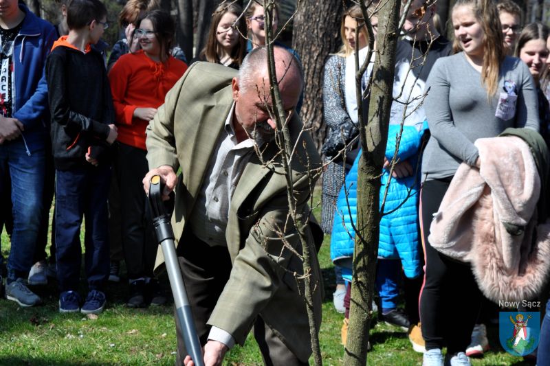 Akcja zasadzenia dębu na Plantach, została zrealizowana pod kierunkiem sądeckiej polonistki Alicji Gałęziowskiej. Uczniowie, w ramach konkursu pt. „Posłowie Sejmu II RP. Ich losy i działalność w okresie II wojny światowej i okupacji”, mieli okazję zapoznać się z sylwetką hrabiego Adama Stadnickiego oraz posła Kazimierza Ducha, który sprawował mandat w latach 1918-1939. Podczas II wojny światowej działał dla dobra ojczyzny.