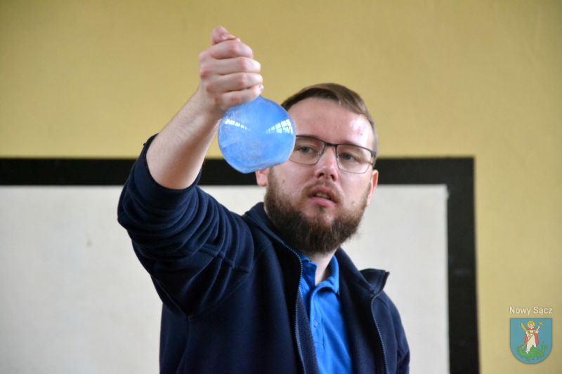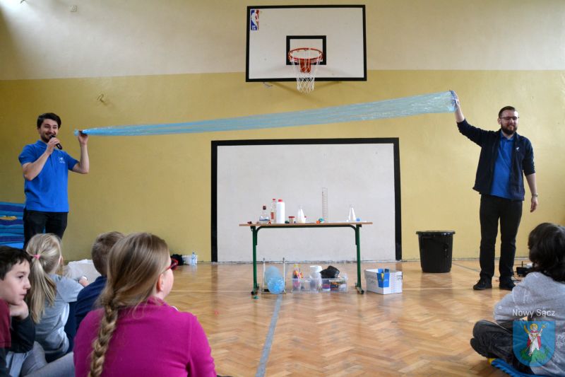 Animatorzy prowadzą też zajęcia w szkołach podstawowych, prezentując ciekawe i widowiskowe eksperymenty.