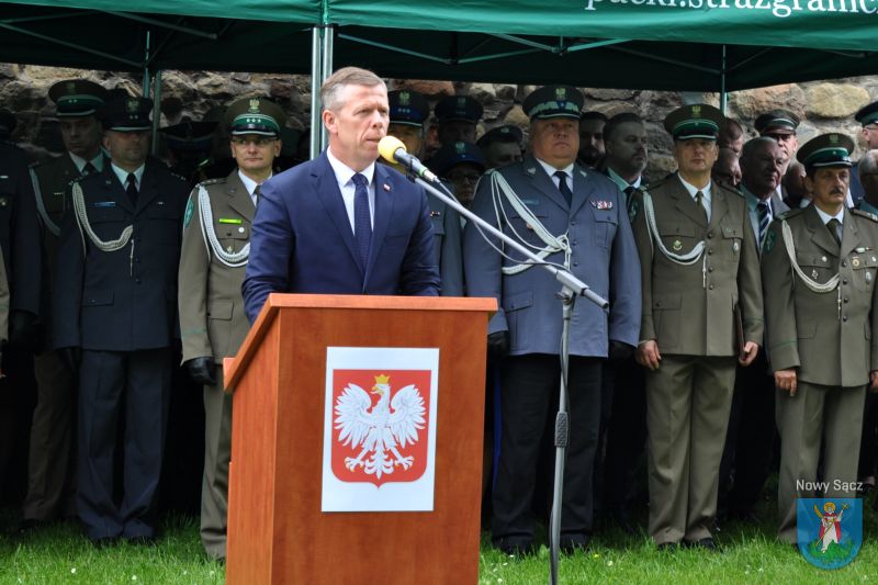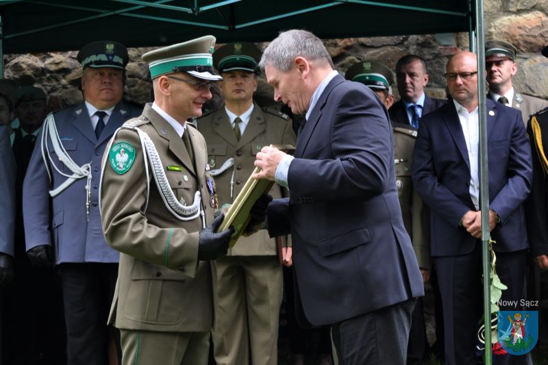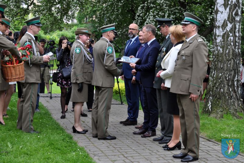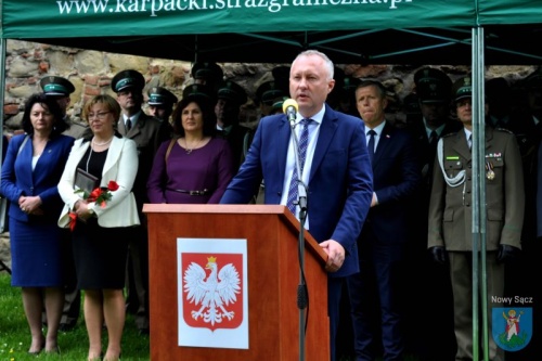 - Znajdujemy się w miejscu szczególnym, w miejscu, gdzie 31 października 2018 roku zostały wmurowane odtworzone tablice upamiętniające nazwiska 194. oficerów I Pułku Strzelców Podhalańskich, poległych w walce o wolną Polskę. Wybór tego miejsca na dzisiejszą uroczystość jest z naszej strony swoistym hołdem dla I Pułku, naszego patrona, gdyż to w tym miejscu, w okresie międzywojennym, odbywały się uroczystości Garnizonu Nowy Sącz z okazji Dnia Żołnierza - podkreślił Komendant Karpackiego Oddziału Straży Granicznej płk SG Stanisław Laciuga.