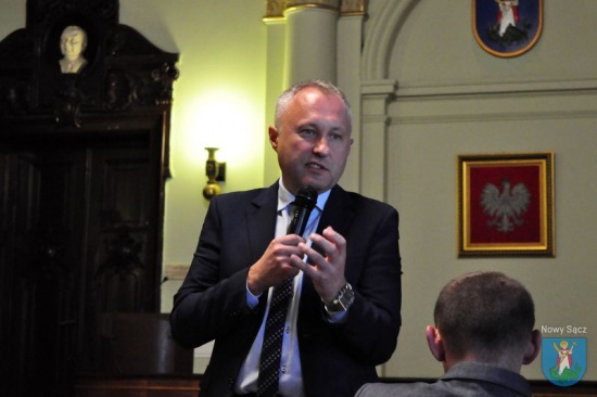 Prezydent Ludomir Handzel przedstawił zebranym, wśród których było dużo przedsiębiorców z sądeckiej starówki, stopień zaawansowania inwestycji miejskich, opowiedział też o najbliższych planach na rozwój miasta i poprawę życia jego mieszkańców.