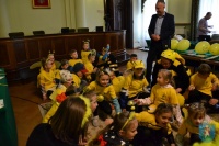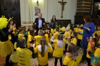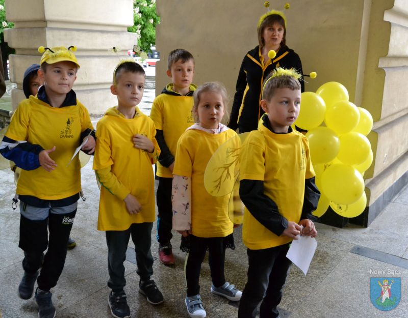 Spacerując po Nowym Sączu, przedszkolaki rozdawały przechodniom żółte balony oraz przygotowane przez siebie rysunki z hasłami, dotyczącymi tych pożytecznych dla ludzi owadów.