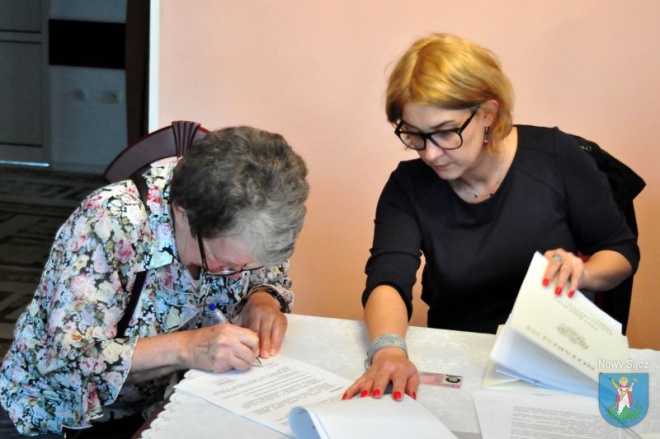 70-letnia mieszkanka DPS przy ul. Nawojowskiej 155 w Nowym Sączu, Aniela Tatur, w obecności zastępcy prezydenta Artura Bochenka oraz notariusza Anny Smal - Rajcy, przekazała na rzecz miasta swoje mieszkanie.