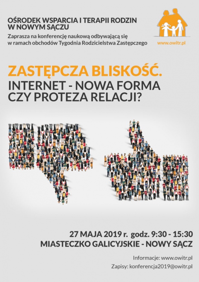27 maja o godz. 9.30 w Miasteczku Galicyjskim w Nowym Sączu rozpocznie się konferencja naukowa odbywająca się w ramach obchodów Tygodnia Rodzicielstwa Zastępczego, organizowana przez Ośrodek Wsparcia i Terapii Rodzin w Nowym Sączu. Wydarzenie objął Patronatem Honorowym Prezydent Miasta Nowego Sącza Ludomir Handzel.