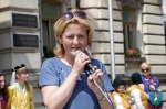Magdalena Majka nawiązała do ubranej w dostojne szaty królowej Jadwigi, która doprowadziła barwny pochód na rynek. - Żaczki moje lube, czcigodni rodziciele, szanowni bakałarze! Rada jestem wielce widząc was tutaj przed moim obliczem tak licznie zgromadzonych – powiedziała królowa. – Jako że mija kolejny rok waszej nauki w mojej wszechnicy, w głowach waszych i sercach, jak mniemam, wiele nobliwych pomysłów zagościło. Wiedzy wszelakiej moc zdobyto, wspomnień bez miary pozostało. Dzielcie się nimi ze swoimi bliskimi – zaapelowała królowa.