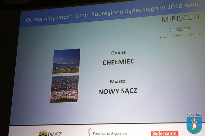 Miasto Nowy Sącz liderem polityki społecznej na Sądecczyźnie - tak ocenił zespół ekonomistów z Instytutu Ekonomicznego PWST w Nowym Sączu. 28 czerwca w Krynicy-Zdroju odbyło się wręczenie nagród w dorocznej Ocenie Aktywności Gmin Subregionu Sądeckiego za rok 2018. W ogólnym zestawieniu Nowy Sącz zajął drugie miejsce, wspólnie z gminą Chełmiec.