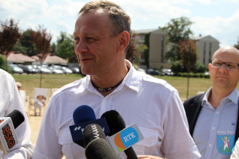 Pierwsza w mieście Nowosądecka Strefa Relaksu już działa. Na placu Starej Sandecji przy Alejach Wolności jest piasek, leżaki i kurtyna wodna. Symbolicznego otwarcia strefy dokonał dziś (8 lipca) prezydent Ludomir Handzel.