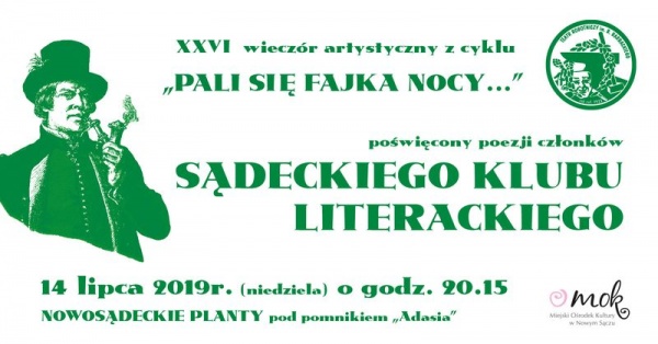 Scena Poetycka przy Miejskim Ośrodku Kultury w Nowym Sączu zaprasza na XXVI wieczór artystyczny z cyklu "Pali się fajka nocy…"Wydarzenie zaplanowano na najbliższą niedzielę.