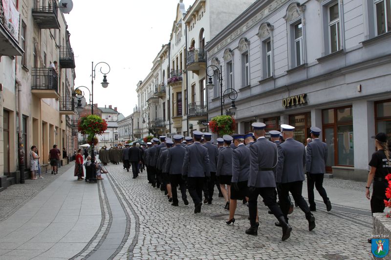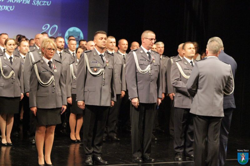 W trakcie uroczystej zbiórki wręczone zostały odznaczenia i awanse na wyższe stopnie służbowe. Spośród ponad 160 awansowanych 51 funkcjonariuszy mogło przyjąć awanse osobiście, pozostali pełnili służbę. Osoby zasłużone dla sądeckiej policji otrzymały wyróżnienia z rąk komendanta policji w Nowym Sączu, insp. Jarosława Tokarczyka. Wśród wyróżnionych był prezydent Ludomir Handzel, który otrzymał okolicznościowy medal.