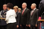 - Bardzo dziękuję za zaproszenie na dzisiejszą uroczystość – powiedział prezydent Nowego Sącza Ludomir Handzel. – Myślę, że szczególnie na tej sali jest wiedza, dlaczego mnie osobiście mundur policyjny jest bliski, dlaczego tak bardzo szanuję waszą pracę i dlaczego ją doceniam. Dziś stoję przed wami jako prezydent Nowego Sącza i zapewniam was o wielkim szacunku dla waszej pracy ze strony mieszkańców Nowego Sącza. Chciałbym podziękować za tę służbę, za tych wiele godzin czasem trudnej, ciężkiej pracy. Prawdą jest, że zaufanie do policji coraz bardziej rośnie i to jest właśnie efekt waszej pracy. Zawsze możecie liczyć na moje wsparcie i dowiodę tego swoimi działaniami – zapewnił na zakończenie prezydent.