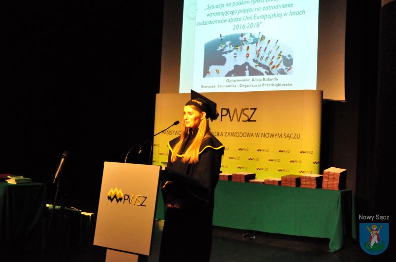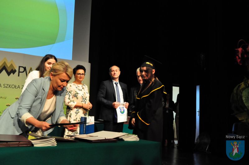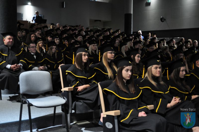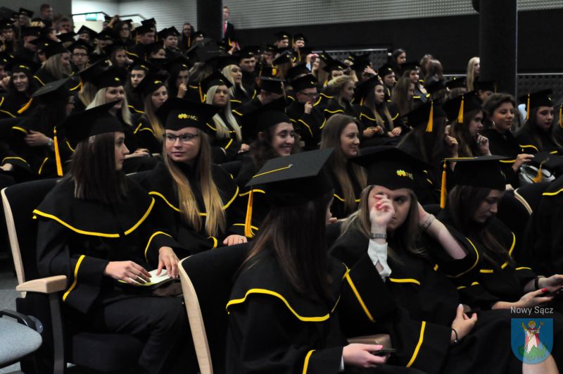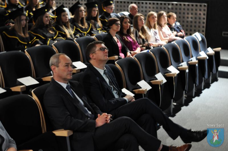 W auli Biblioteki Państwowej Wyższej Szkoły Zawodowej w Nowym Sączu odbyła się uroczysta gala wręczenia dyplomów absolwentom studiów Instytutu Ekonomicznego. W wydarzeniu wziął udział prezydent Ludomir Handzel, a także dyrektor Wydziału Komunikacji Społecznej i Kultury dr Marcin Poręba i dyrektor Wydziału Bezpieczeństwa i Kontroli Wewnętrznej Mirosław Świst.