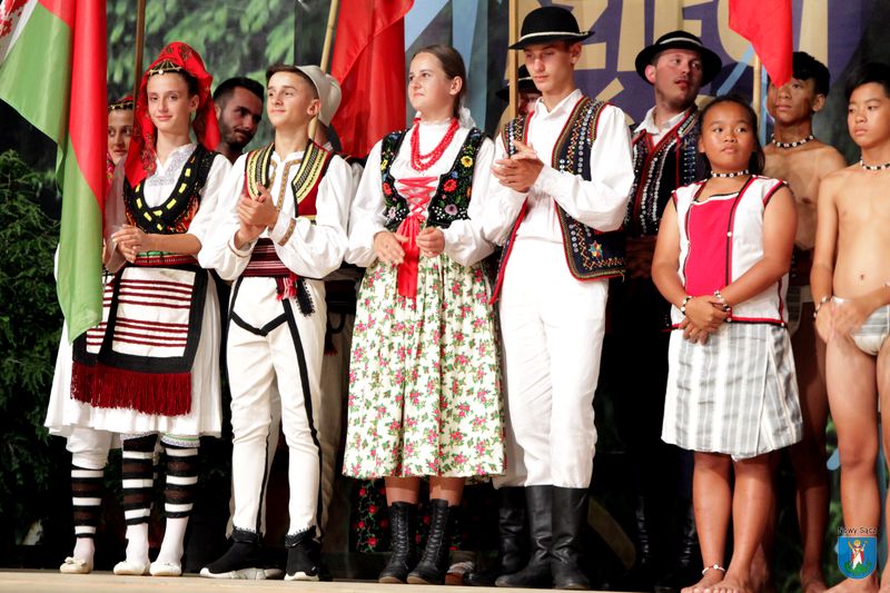 W koncercie, przeniesionym do hali MOSiR ze względu na opady deszczu, z fragmentami swoich programów wystąpiły wszystkie zespoły. W poniedziałek rozpoczynają się dni narodowe, podczas których wystąpią zespoły zagraniczne razem ze swoimi polskimi kamratami. Pierwszy koncert odbędzie się o 11:00 przed ratuszem, wieczorny o 20:00 w hali MOSiR.