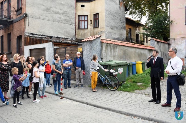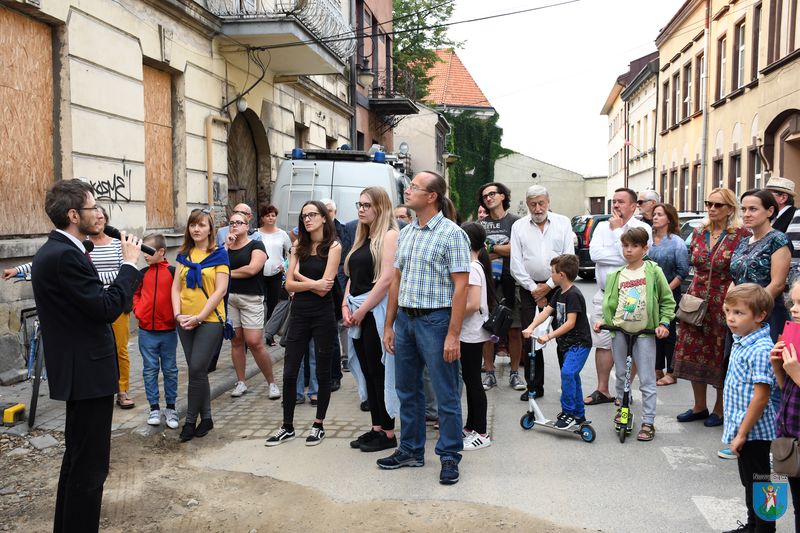 Uroczystości rozpoczęły się spacerem historycznym pod hasłem Jezuici i ich żydowscy sąsiedzi, który prowadził od szkoły popularnie nazywanej "kolejówką" przy ul. św. Ducha na Plac Trzeciego Maja. Prowadzący spacer Łukasz Połomski i Artur Franczak z Sądeckiego Sztetlu opowiadali o zgodnym na ogół współistnieniu obydwu zakonu i żydowskimi sąsiadami, ale też o symbolicznych i namacalnych murach dzielących obydwie społeczności.