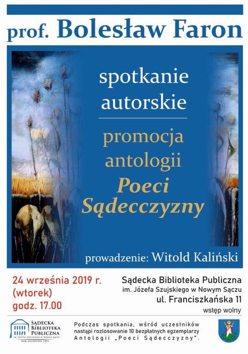 Sądecka Biblioteka Publiczna im. Józefa Szujskiego w Nowym Sączu zaprasza na spotkanie autorskie z profesorem Bolesławem Faronem, poświęcone poezji i poetom regionu.