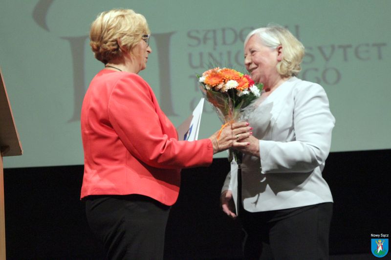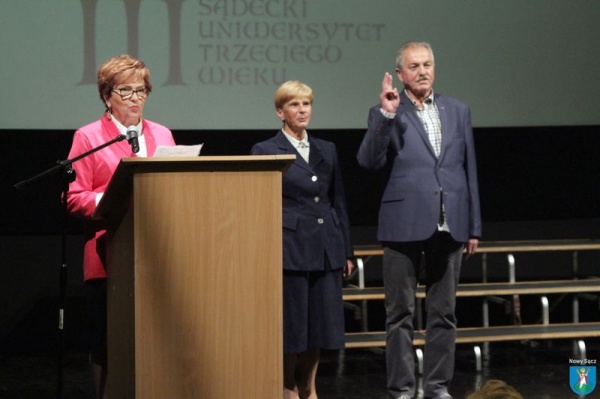 O specyfice działań dla ludzi w wieku senioralnym mówiła dr hab. Zdzisława Zacłona, profesor nadzwyczajna Państwowej Wyższej Szkoły Zawodowej w Nowym Sączu i przewodnicząca i Rady Programowo-Naukowej SUTW. Piętnastoletnią historię stowarzyszenia przybliżyła Elżbieta Pachoń, członek zarządu SUTW i jedna z trzech najstarszych słuchaczek uniwersytetu. O swojej drodze na szczyty naukowej kariery mówili wywodzący się z Sądecczyzny wieloletni przyjaciele SUTW, profesorowie Andrzej Mączyński i Julian Dybiec.