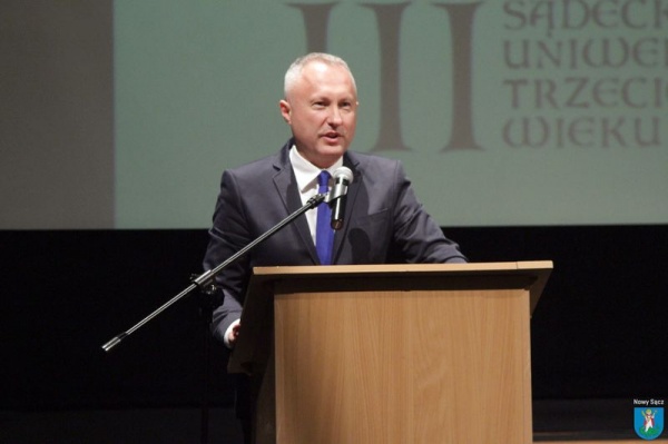 Ludomir Handzel zwrócił także uwagę na niezwykłą aktywność Sądeckiego Uniwersytetu Trzeciego Wieku. - Czuję na tej sali bardzo dużą energię i to jest bardzo dobry prognostyk na następne lata – powiedział prezydent. – Gratuluję tych 15 lat, tych spotkań, pozyskiwanej wiedzy, ale również tego, że można z kimś spotkać się, porozmawiać, wymienić myśli, dowiedzieć się czegoś, zobaczyć inne spojrzenie - powiedział prezydent Handzel i dodał: - Szczególnie jestem wzruszony, że część mojego grona profesorskiego jest na tej sali. Niedawno odnalazłem swoją pracę maturalną, pod którą podpisała się pani Anna Listwan, będąca na tej sali. Pani profesor, pozdrawiam bardzo serdecznie i dziękuję za cztery lata nauki – powiedział prezydent.
