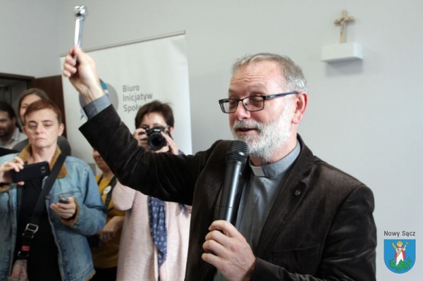 Witając się z mieszkańcami osiedla prezydent Handzel zapewnił, że nie tylko musiał, ale przede wszystkim chciał tu być. - Wychowałem się, jak być może część z państwa wie, niedaleko, w bloku zwanym "Pekinem", a Żółkiewskiego to była moja codzienna droga z przedszkola nr 9. Tak więc te tereny są mi dobrze znane i zawsze darzę je dużym sentymentem. Zapewne państwo wiecie, że będziemy przystępować do budowy dużego, ogrodzonego placu zabaw tutaj, na osiedlu. Bardzo się z tego cieszę. Obiecałem co najmniej 25 takich placów zabaw w ciągu tej kadencji i słowa dotrzymam – zapewnił prezydent i dodał: - Aktywność to słowo, które powinno przyświecać nam, sądeczanom. Jesteśmy bardzo aktywni i z tego się bardzo cieszę. Chcę, żeby to miejsce tętniło życiem i żebyście państwo tutaj znajdowali tylko miłe chwile – zakończył prezydent i symbolicznie odsłonił logo MAM. Lokal poświęcił proboszcz parafii kolejowej, o. Bogdan Długosz SJ.