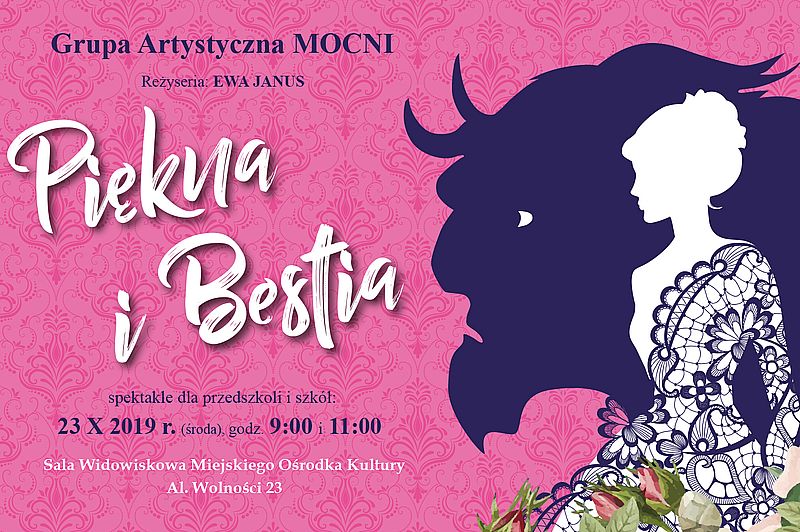 Grupa Artystyczna MOCNI i Miejski Ośrodek Kultury zapraszają na spektakl pt. Piękna i Bestia, oparty na tradycyjnych ludowych opowieściach, spisanych przez Jeanne - Marie Leprince de Beaumont (23 października). Spektakl wyreżyserowała Ewa Janus.