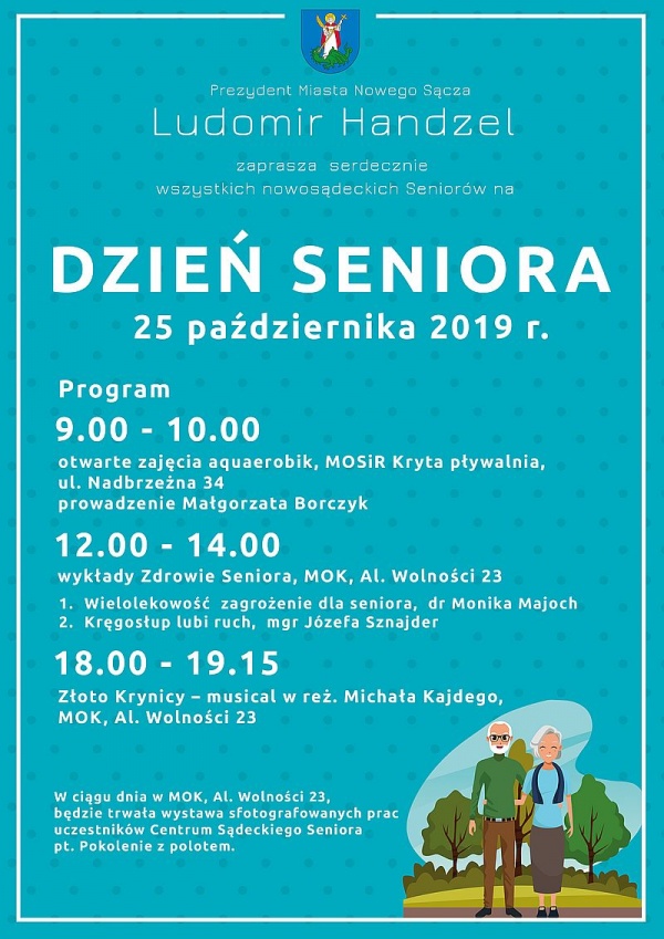 Prezydent Nowego Sącza Ludomir Handzel zaprasza w najbliższy piątek (25 października) na obchody Dnia Seniora, organizowane przez Urząd Miasta Nowego Sącza we współpracy ze Stowarzyszeniem Uniwersytet Trzeciego Wieku.