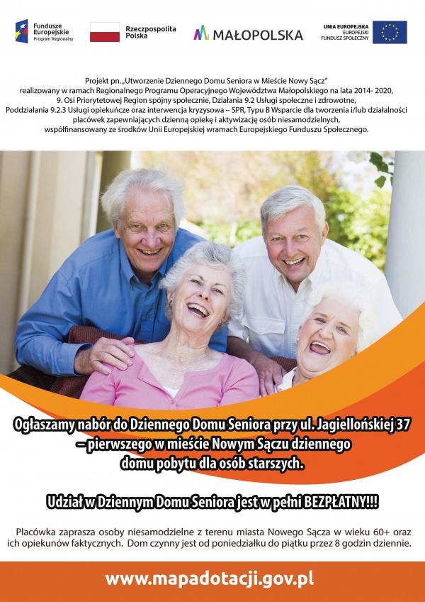 Miasto Nowy Sącz i Miejski Ośrodek Pomocy Społecznej ogłaszają nabór do Dziennego Domu Seniora przy ul. Jagiellońskiej.
