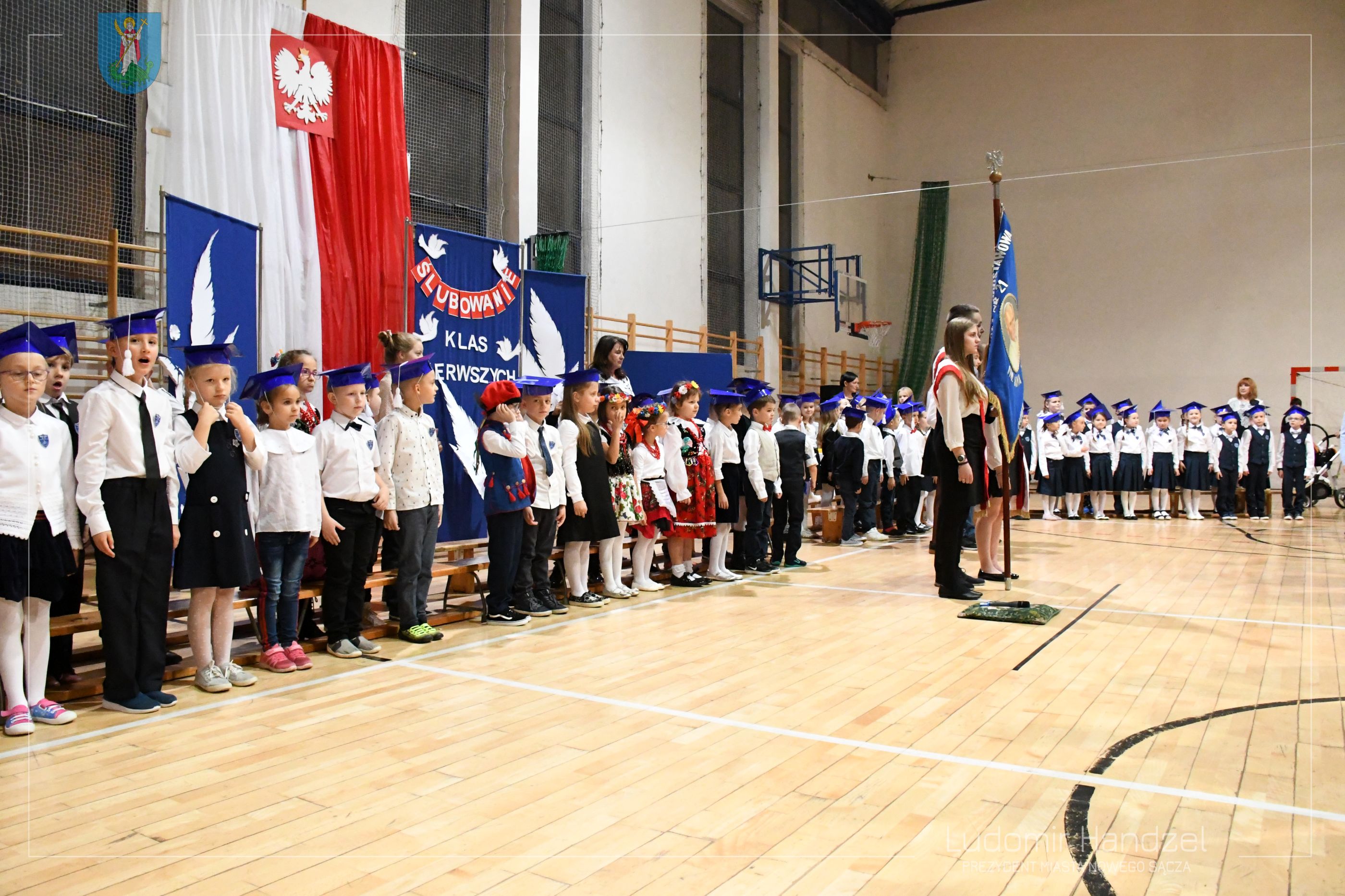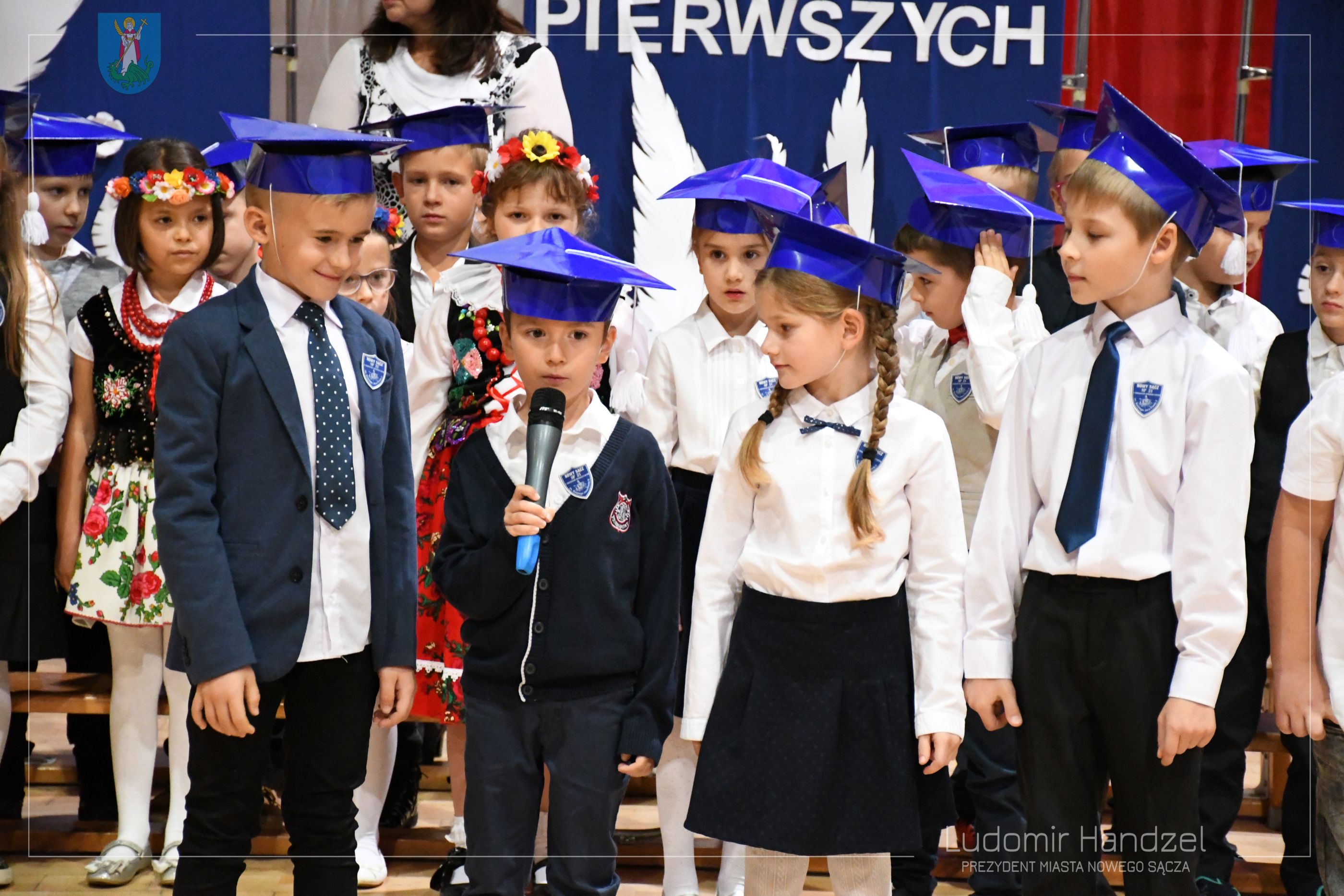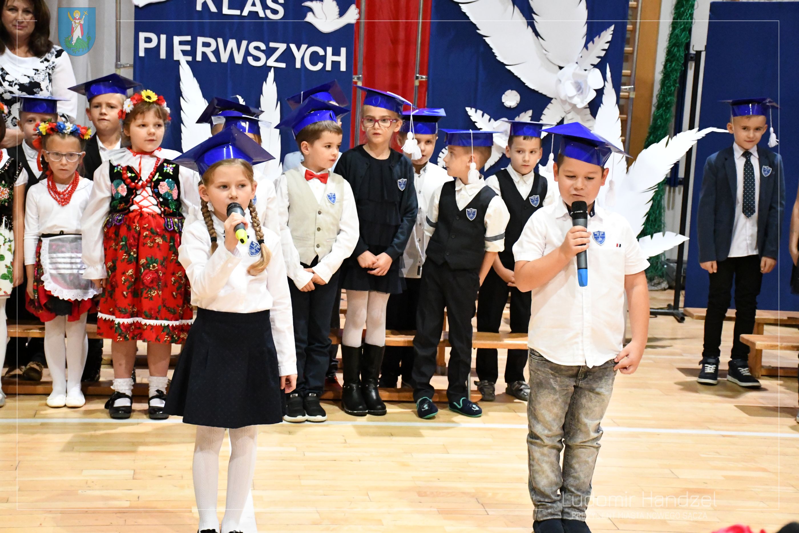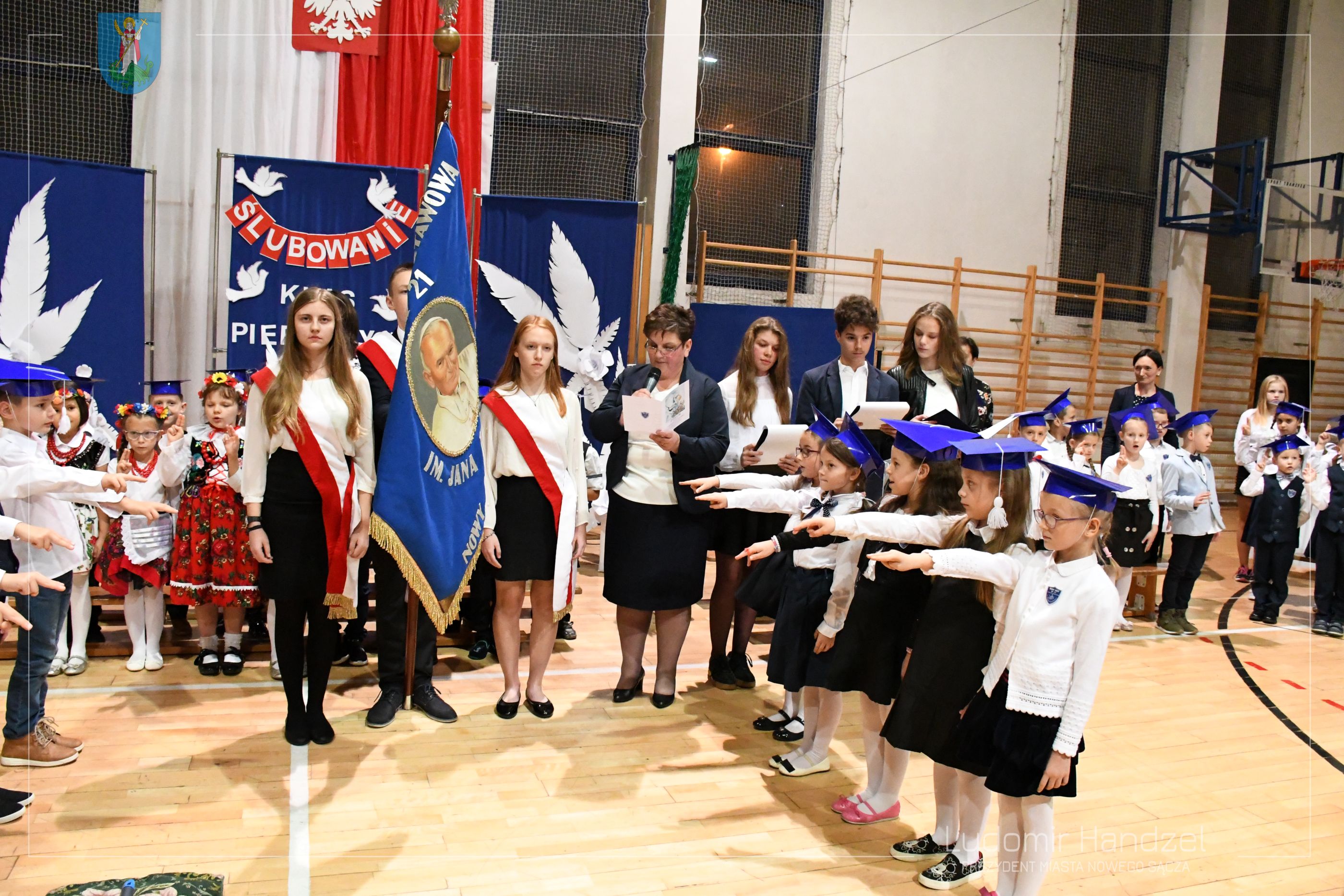 Przedstawiciele klas pierwszych złożyli ślubowanie przed sztandarem szkoły. Prezydent Ludomir Handzel, dyrektor szkoły Beata Mac, radni Leszek Gieniec i Dawid Dumana oraz przedstawiciele oświaty pasowali pierwszaków na uczniów za pomocą okazałych ołówków. Świeżo upieczeni uczniowie otrzymali również od prezydenta książki. Uroczystość zakończyła się występem artystycznym pierwszoklasistów.