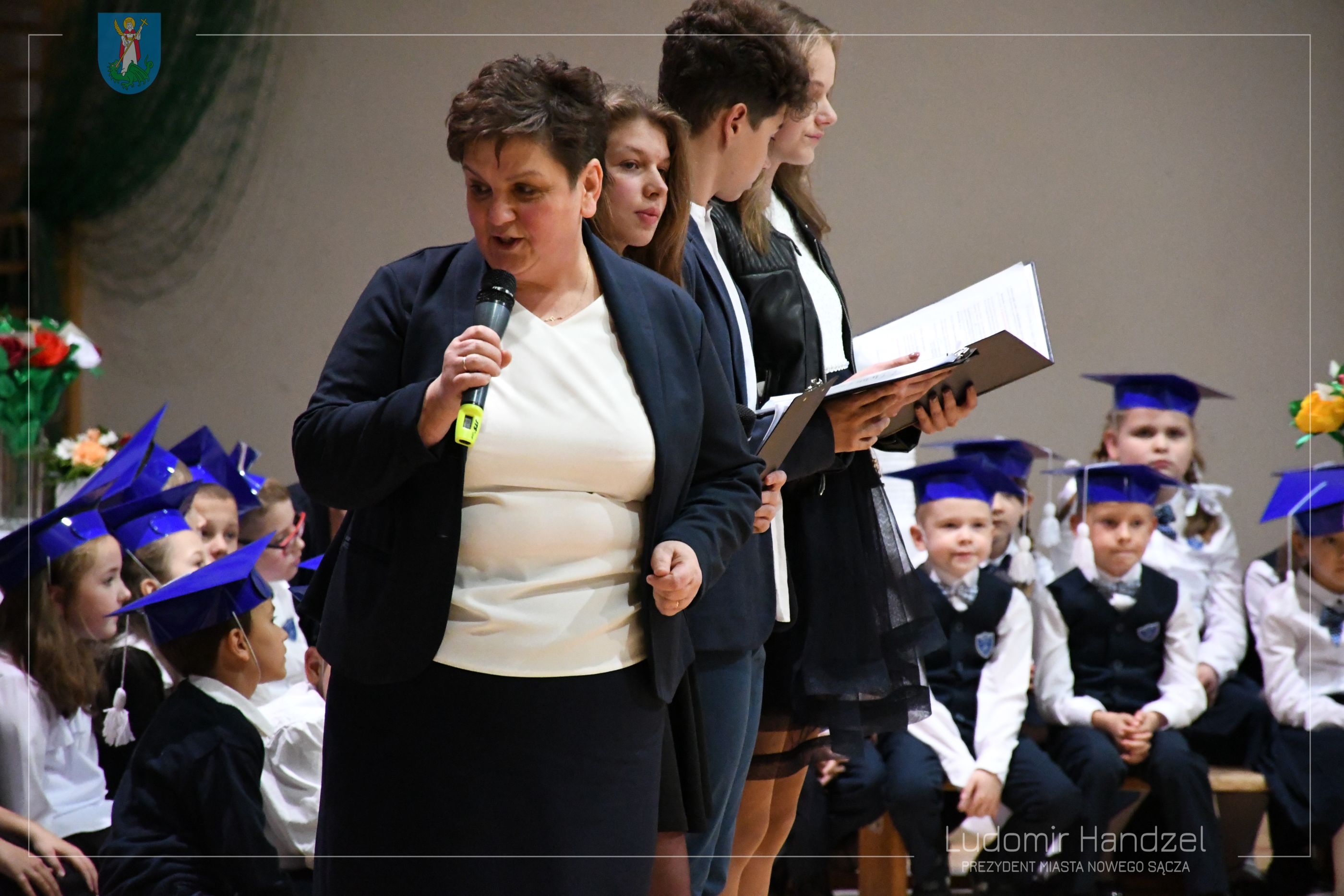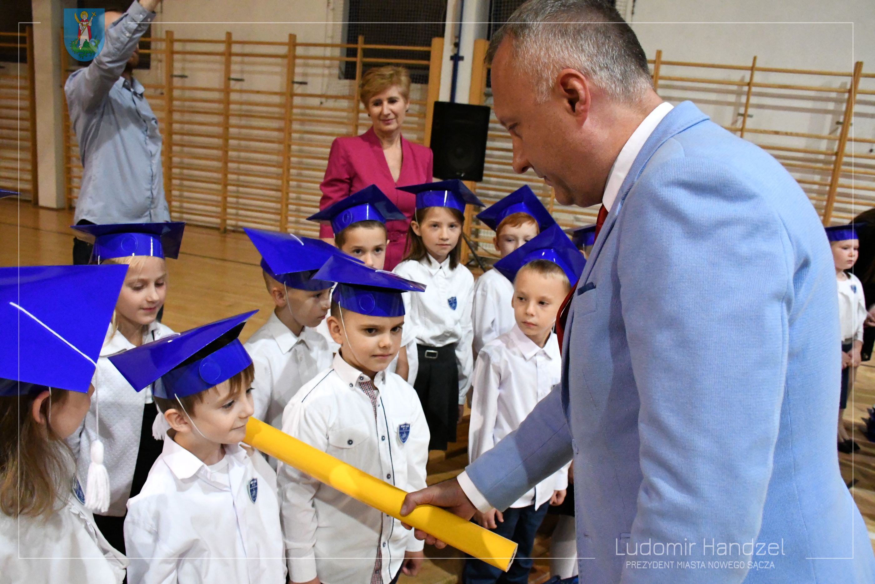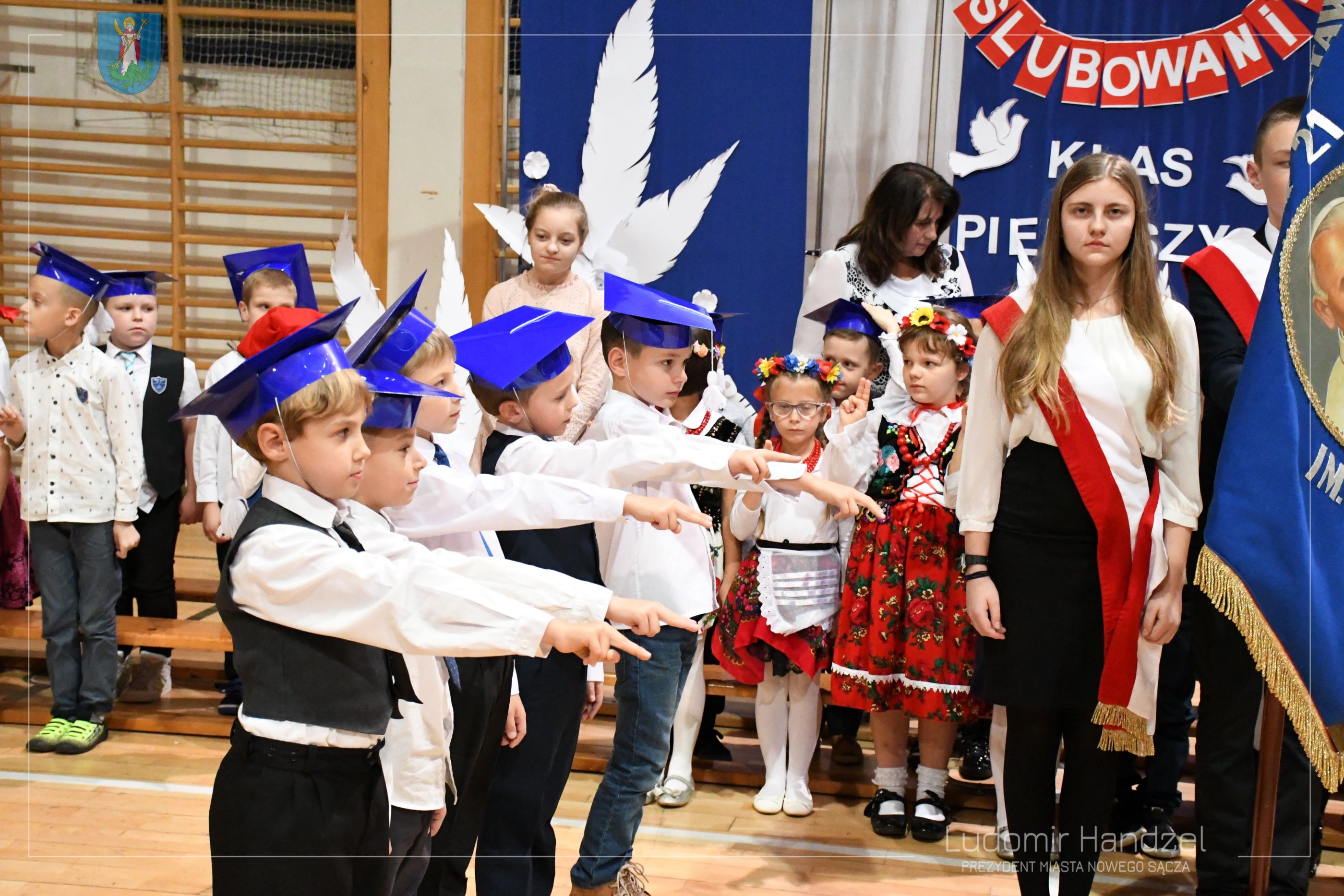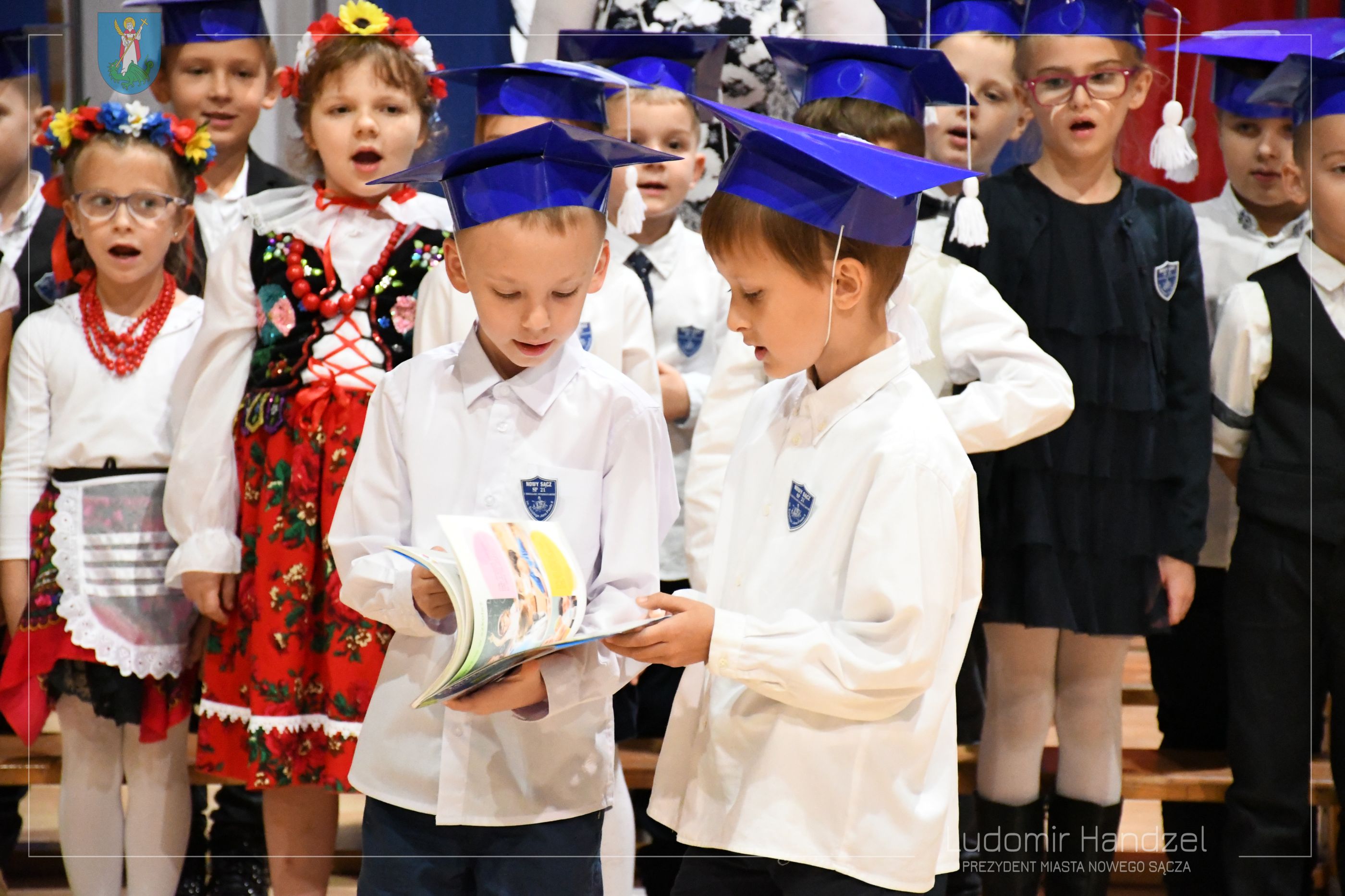 Przedstawiciele klas pierwszych złożyli ślubowanie przed sztandarem szkoły. Prezydent Ludomir Handzel, dyrektor szkoły Beata Mac, radni Leszek Gieniec i Dawid Dumana oraz przedstawiciele oświaty pasowali pierwszaków na uczniów za pomocą okazałych ołówków. Świeżo upieczeni uczniowie otrzymali również od prezydenta książki. Uroczystość zakończyła się występem artystycznym pierwszoklasistów.