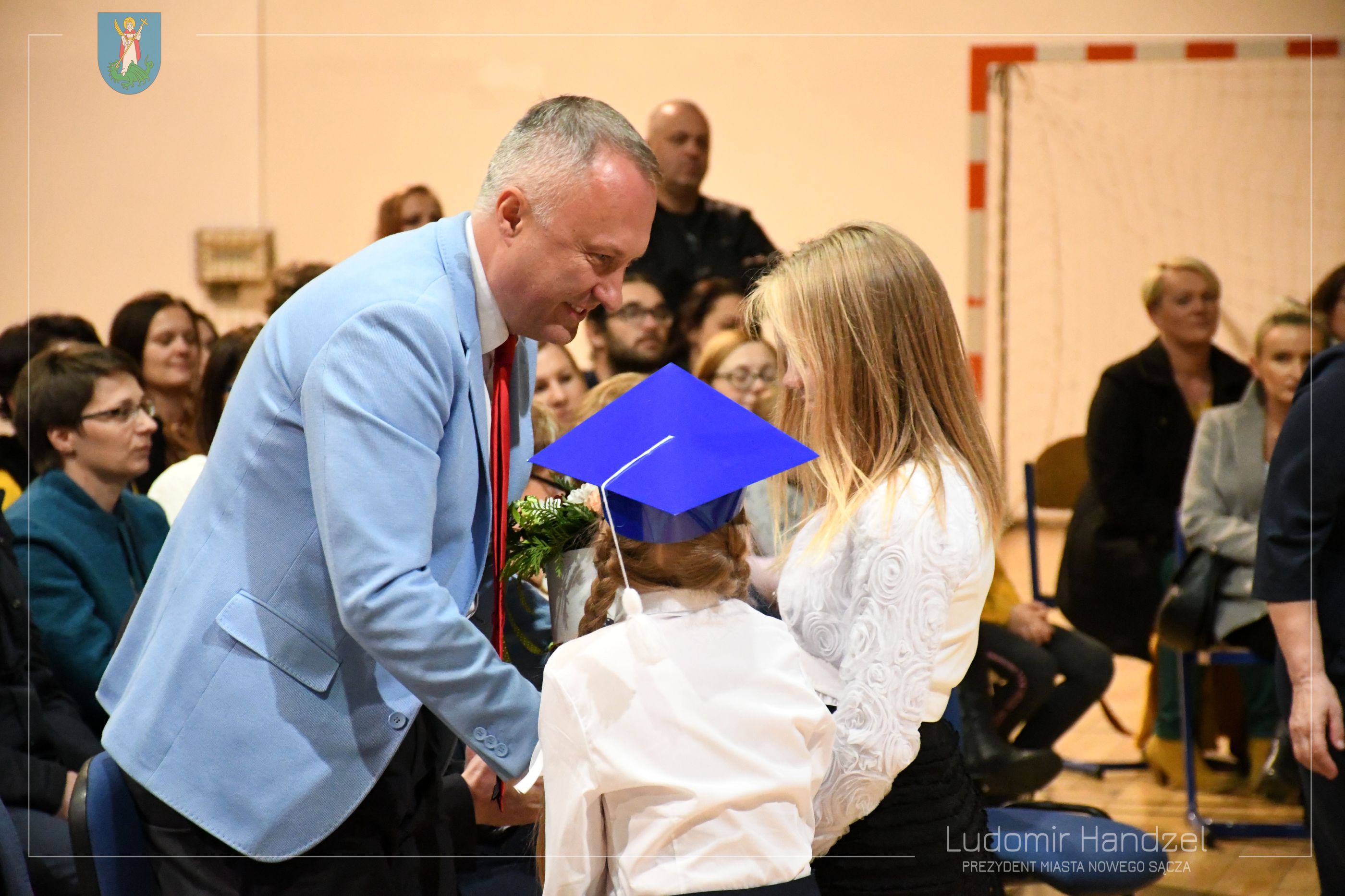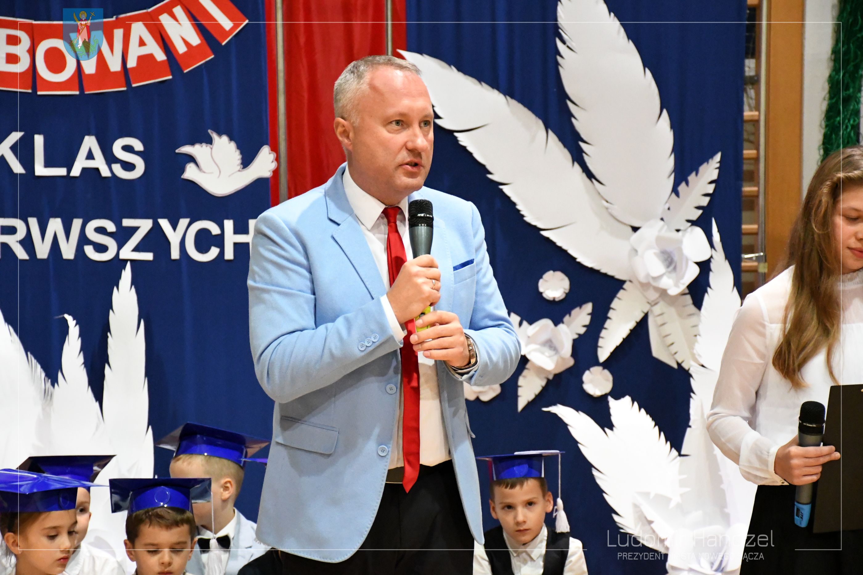 - Chcę wam powiedzieć, że dokładnie pamiętam dzień w którym stałem się uczniem klasy pierwszej – powiedział prezydent Ludomir Handzel. – Zazdroszczę wam, ponieważ przed wami 8 wspaniałych lat w świetnej szkole i ze wspaniałymi nauczycielami. Szanujcie swoich nauczycieli ale także szanujcie się między sobą i nie dokuczajcie sobie. Tutaj zaczną się wasze pierwsze przyjaźnie, które mogą przetrwać nawet całe życie – dodał prezydent.