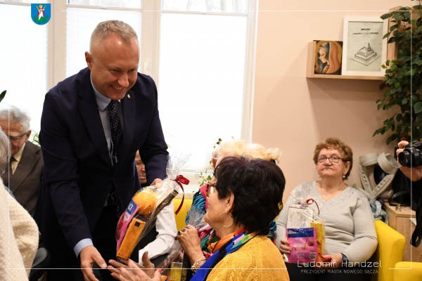 Prezydent Ludomir Handzel spotkał się z seniorami w Dziennym Domu Seniora przy ulicy Jagiellońskiej 37. Okazją do spotkania był obchodzony dziś (20 listopada) Ogólnopolski Dzień Seniora. Prezydent złożył nowosądeckim seniorom życzenia oraz podarował upominki.