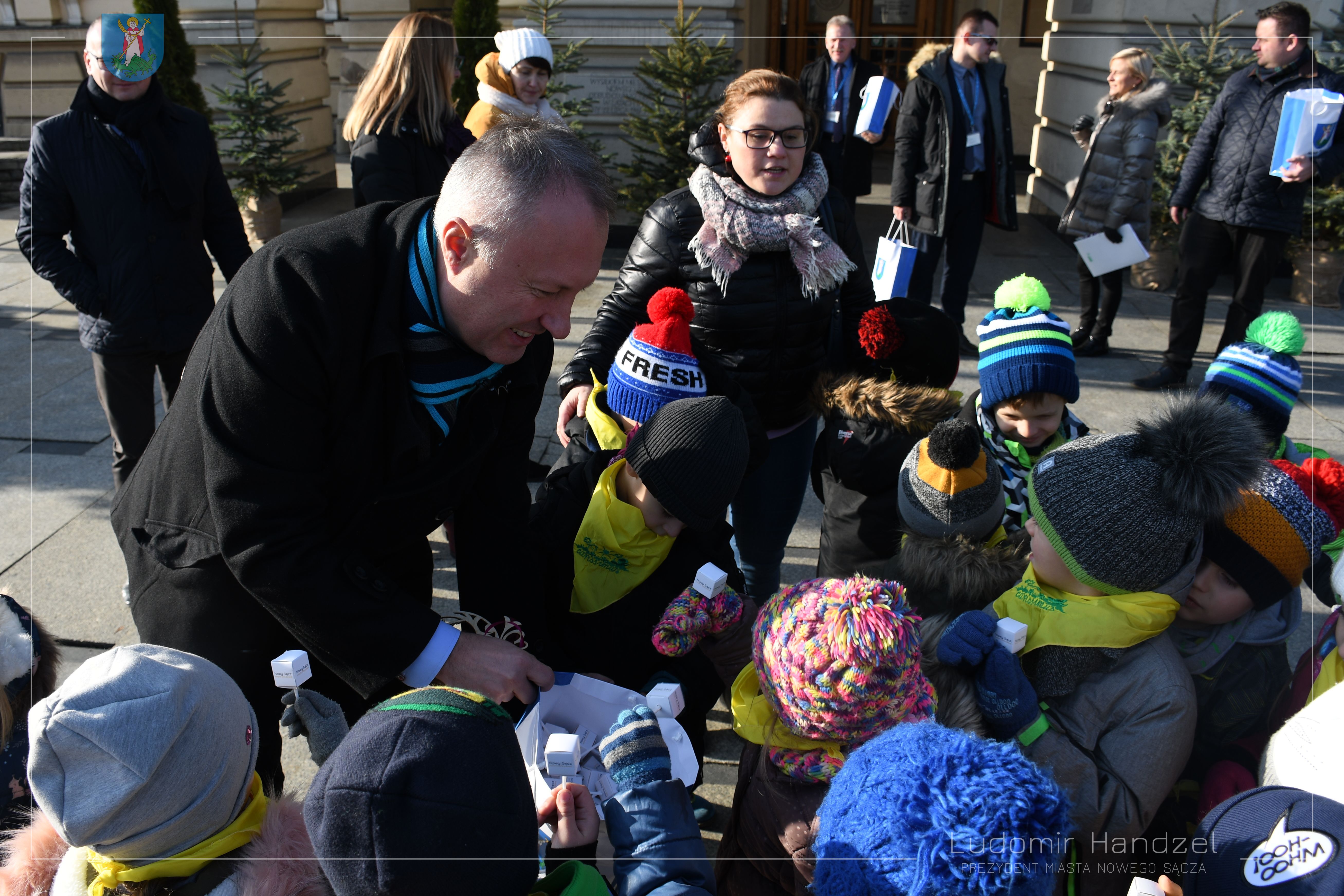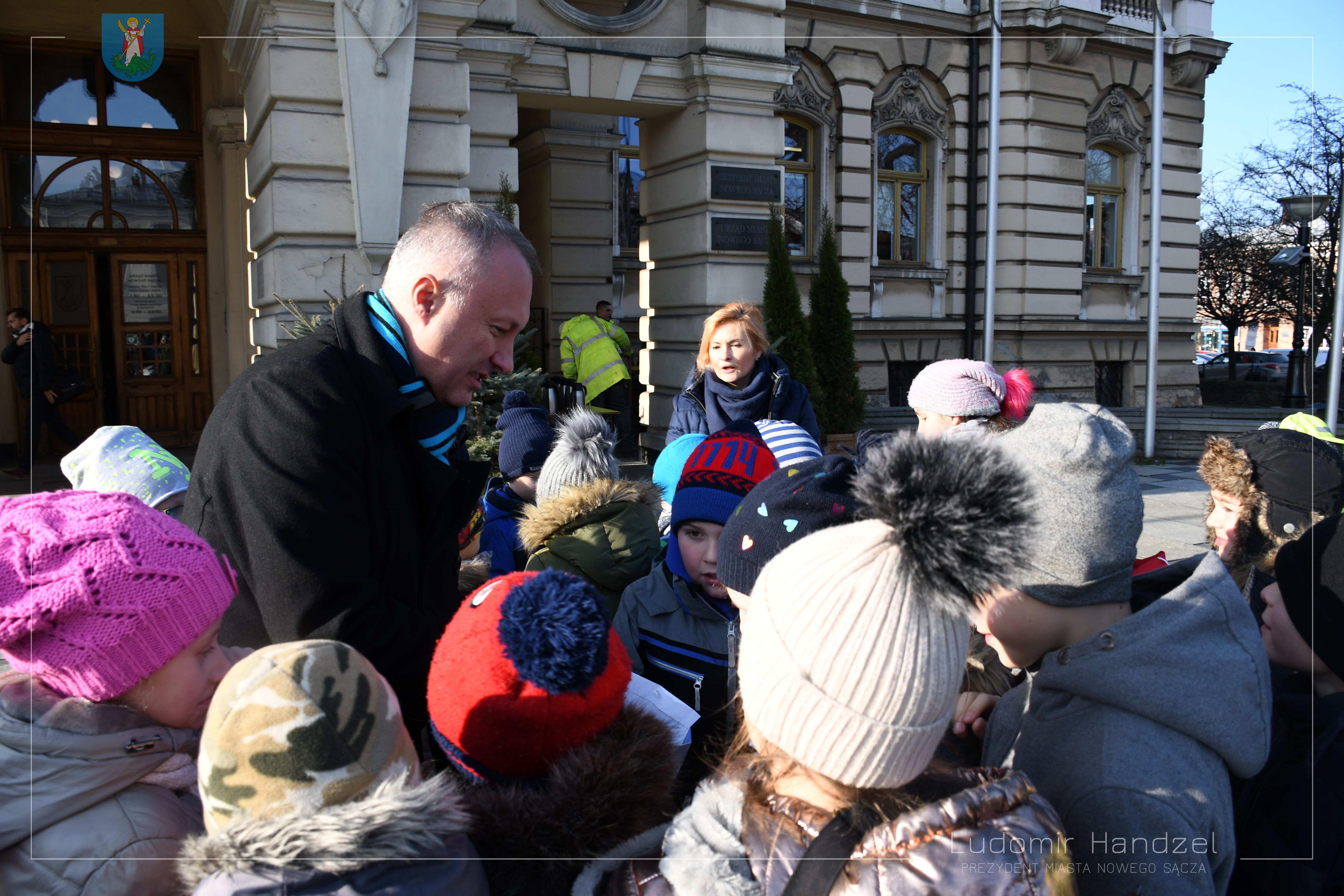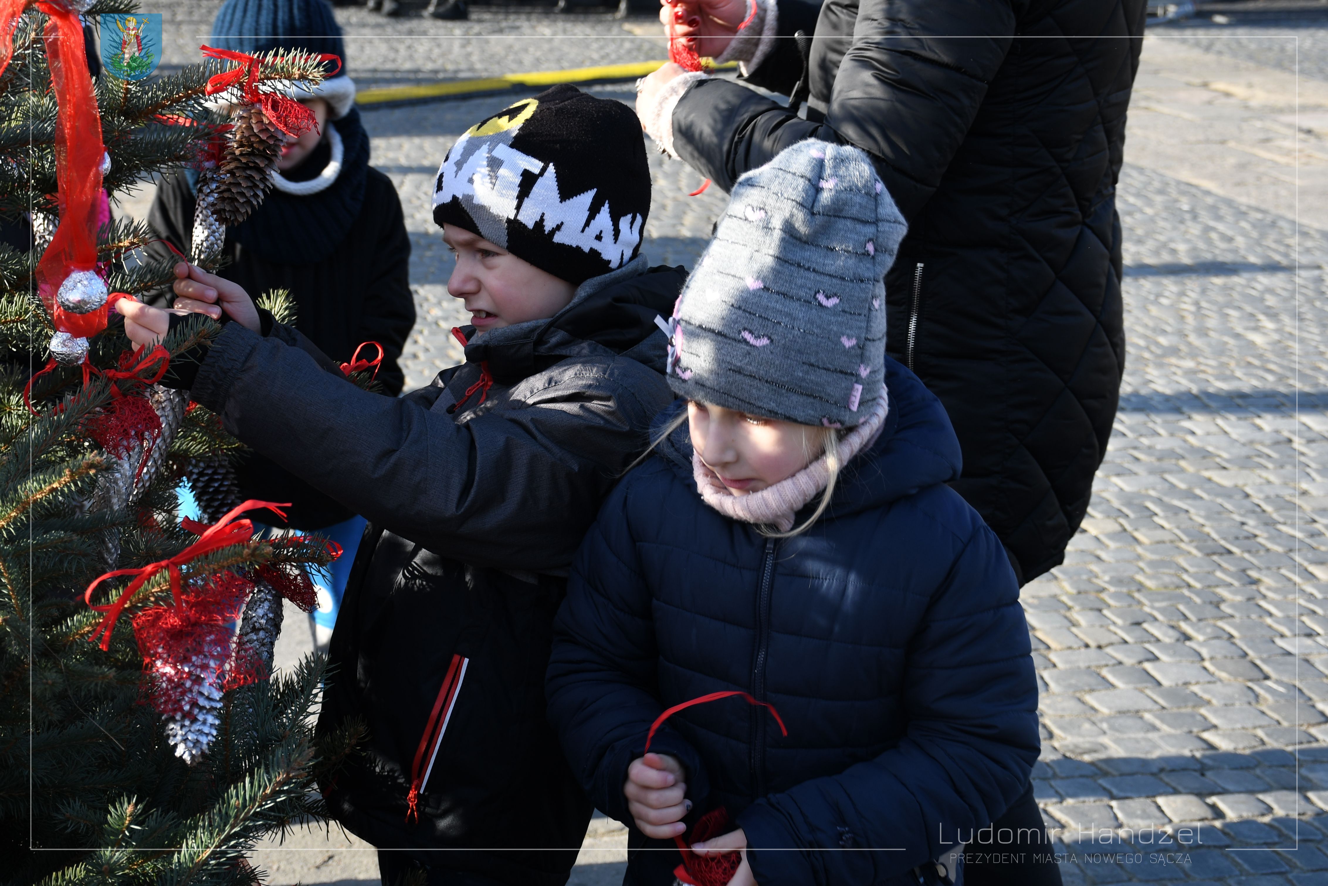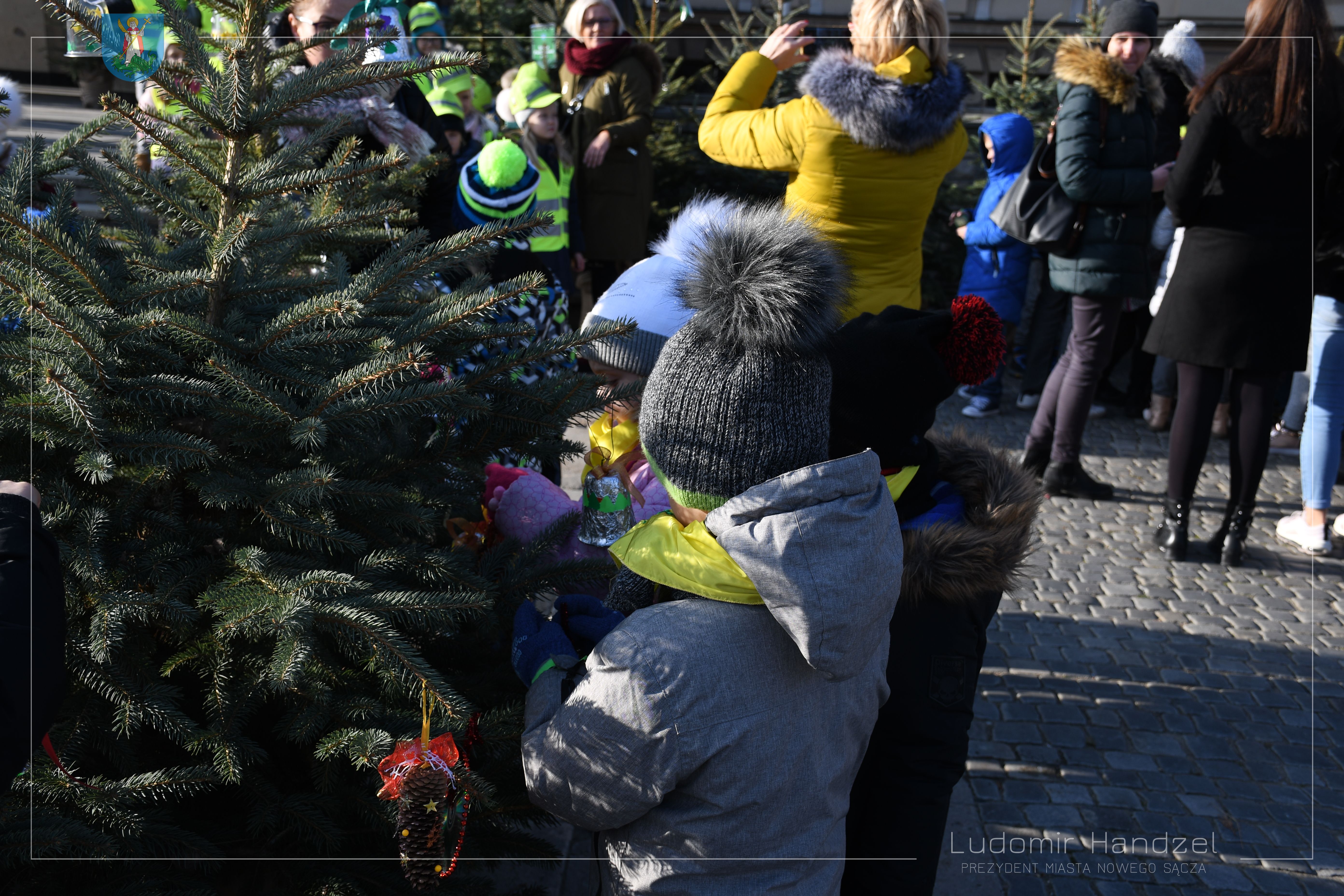 Dzieci i młodzież z sądeckich szkół, przedszkoli i placówek oświatowych wspólnie przyozdobili dwieście choinek na nowosądeckim Rynku. Zgromadzonych mieszkańców przywitał prezydent Ludomir Handzel, który przyłączył się do akcji. Nie zabrakło wspólnych zdjęć oraz rozmów z Sądeczanami. Prezydent wręczył dzieciom słodycze i zapewnił, że akcja będzie kontynuowana w kolejnych latach.